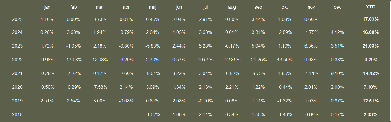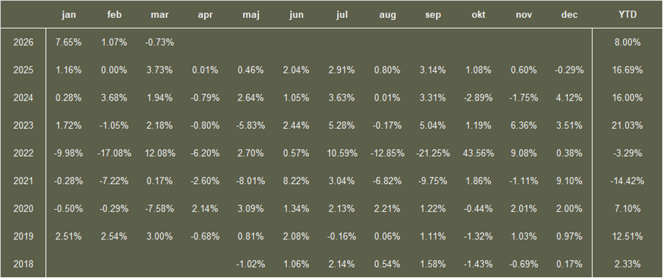Afkastene viser resultaterne frem til nu. Historiske afkast er ikke en garanti for fremtidige afkast.